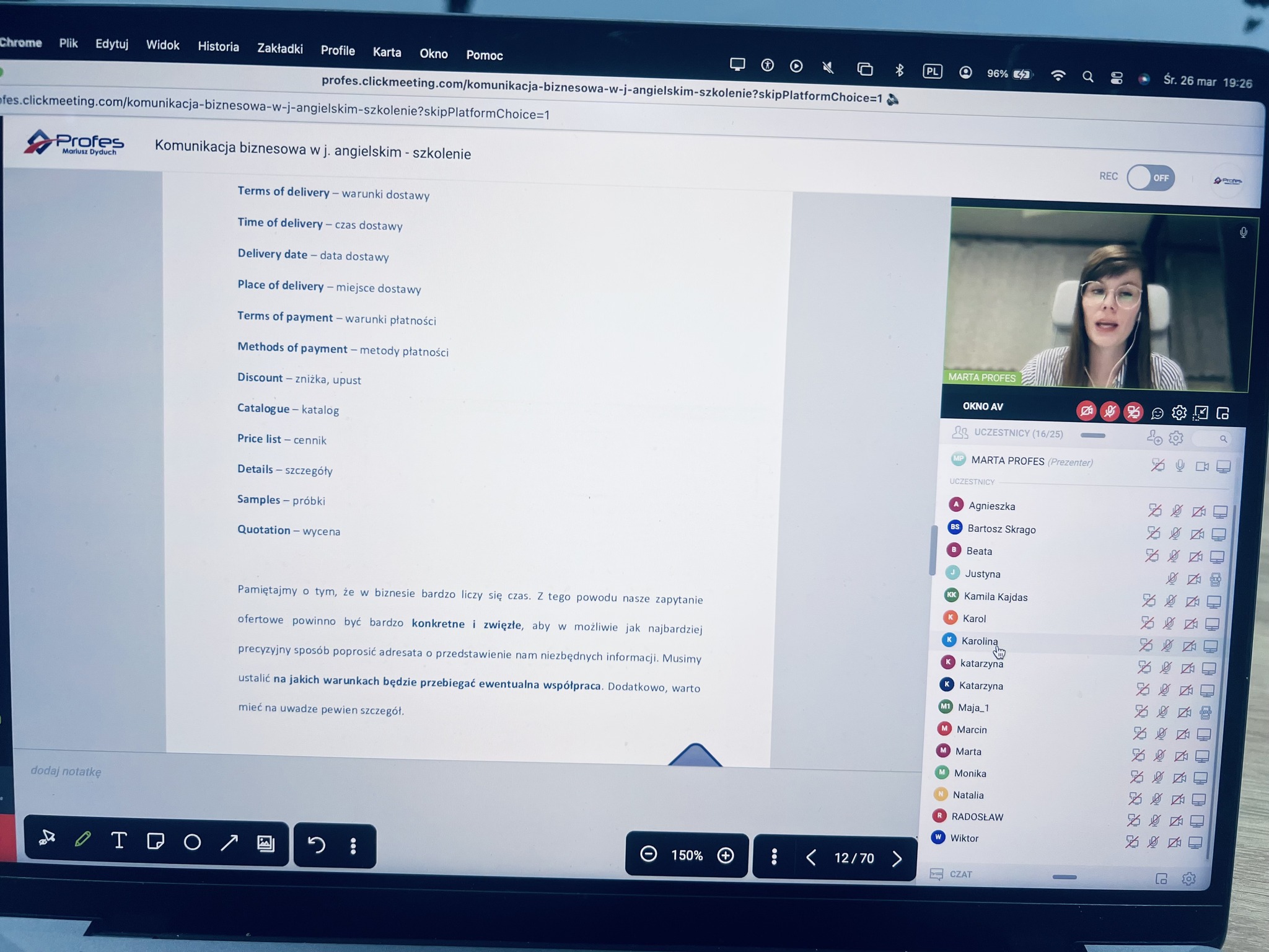 Z radością informujemy, że zakończyliśmy kolejną edycję szkolenia poświęconego prowadzeniu skutecznej komunikacji biznesowej w języku angielskim. Wysoka frekwencja potwierdziła, że temat ten jest nie tylko aktualny, ale przede wszystkim niezwykle potrzebny w codziennej pracy zawodowej.